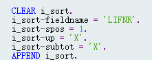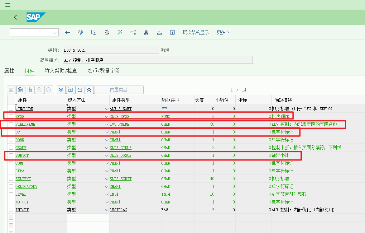 因为我是按照供应商编码进行小计,所以,这个fieldname 的值就是 “lifnr”,其他的字段,可以在表中看到。