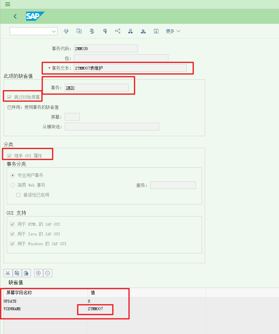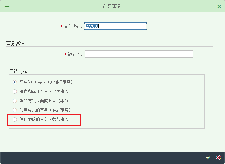 1. 事务代码还是se93,然后给表维护起一个事务代码,点击创建,选择使用参数的事务