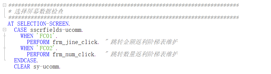 3. 在选择屏幕数据检查这儿,写上这段代码,然后,创建对应的那两个子例程。