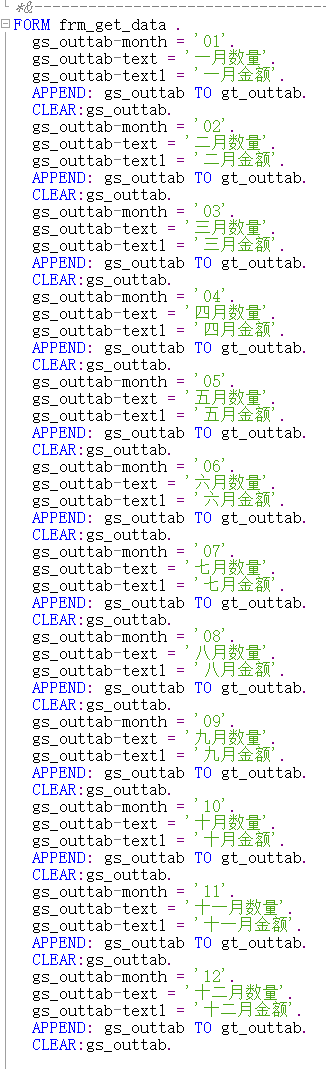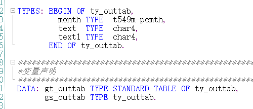 2. 首先,需要定义内表【我是有两个字段的,一个是每月的数量,一个是每月的金额,所以就有两个text】