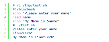答:read命令可以读取来自终端(使用键盘)的数据。read命令得到用户的输入并置于你给出的变量中。例子如下: