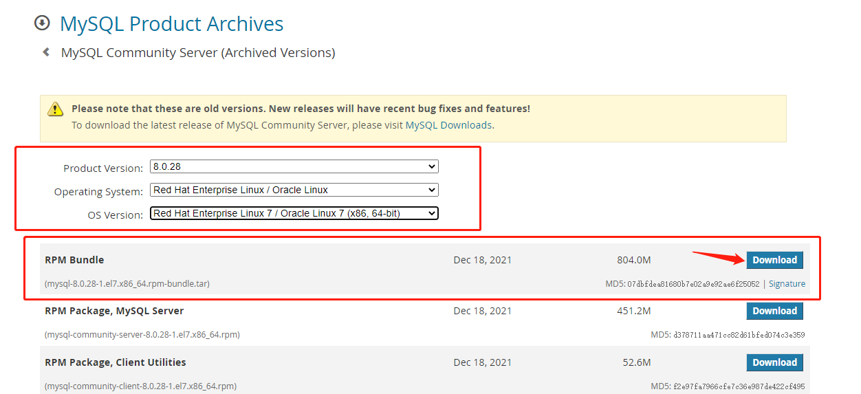tar -xvf mysql-8.0.28-1.el7.x86_64.rpm-bundle.tar