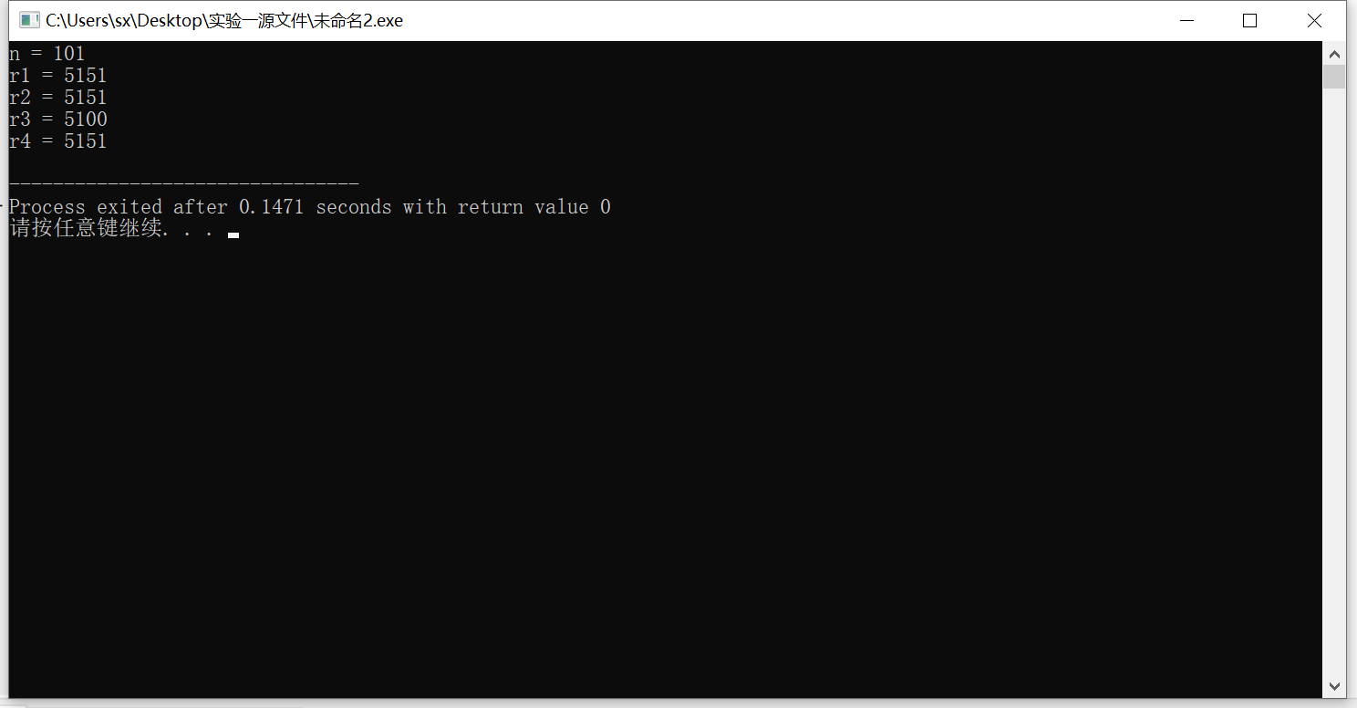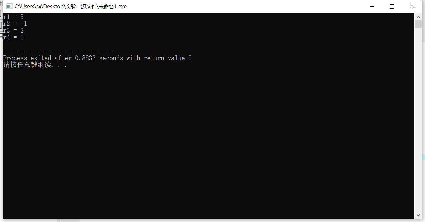 printf("r1 = %d\n", r1); // 在屏幕上输出r1中存放的结果