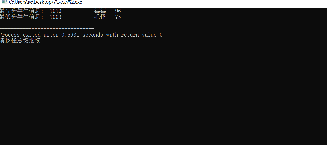 printf("最低分学生信息: %5d%15s%5d\n", stmin.num, stmin.name, stmin.score);
