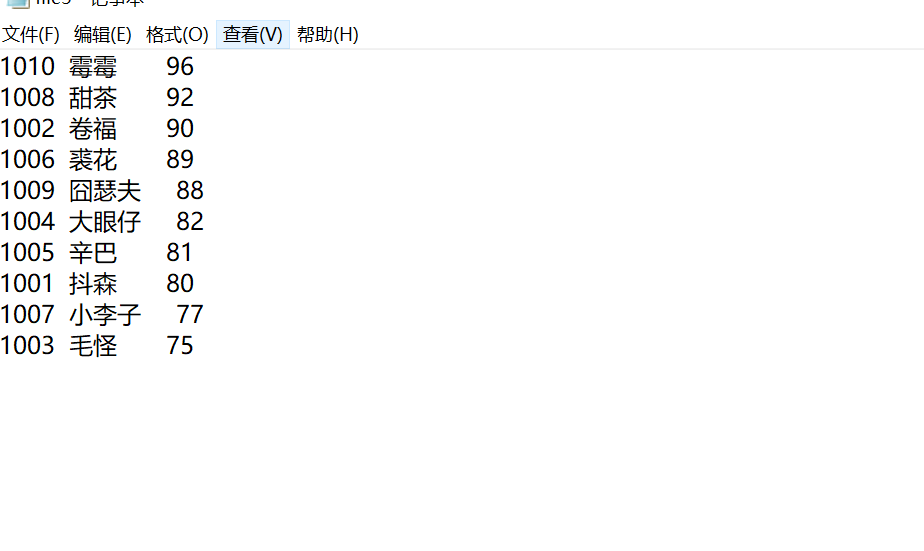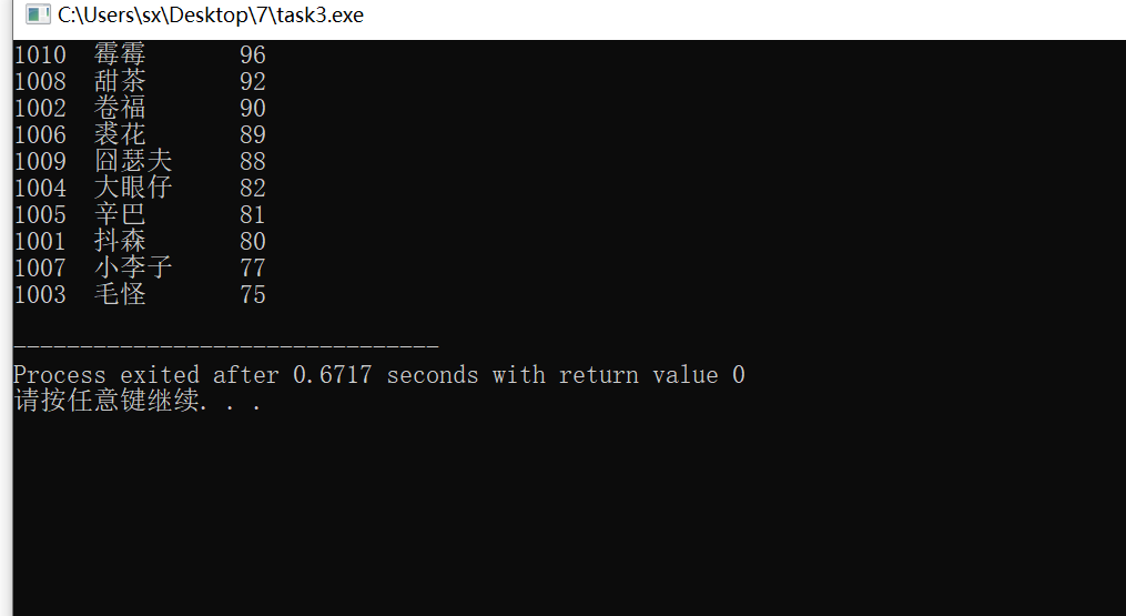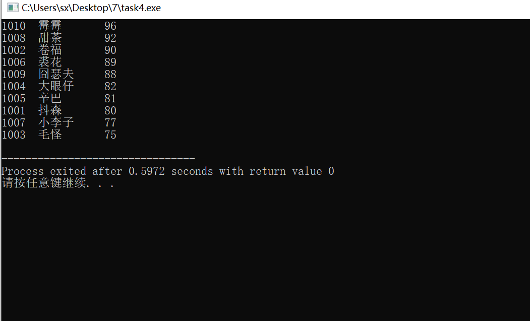 printf("%-6d%-10s%3d\n", st[i].num, st[i].name, st[i].score);