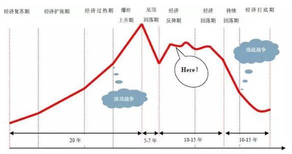 而2015年是全球经济及资产价格的重要拐点,意味着未来四到五年的总体的资产收益率不仅不赚钱,甚至可能要亏损。2015年之后,进入康波的箫条阶段,16年到17年是一次滞胀,2025年彻底进入第五次康波箫条阶段。