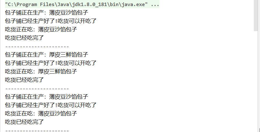 System.out.println("包子铺已经生产好了!吃货可以开吃了");
