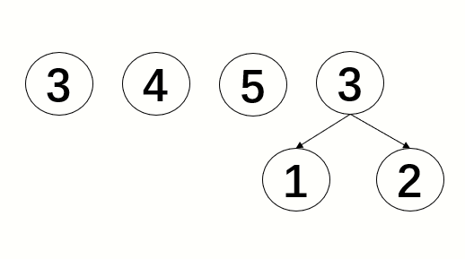 1、在N个节点组成的节点集合中选取两个权值最小的节点组成一棵树,新树的根节点的权值为两个节点权值之和。