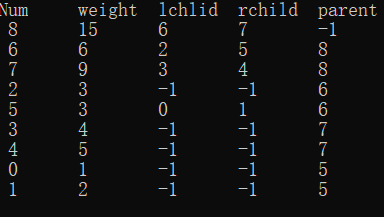 权值(weight)、父节点位置(parent)、左右儿子节点位置(lchild、rchild)
