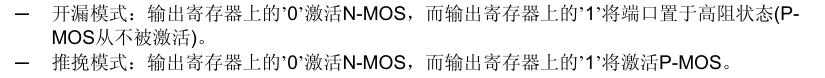 | 开漏输出 | 只能拉低或高阻态,需外接上拉电阻才能输出高电平 | I2C、电平转换、总线通信 |