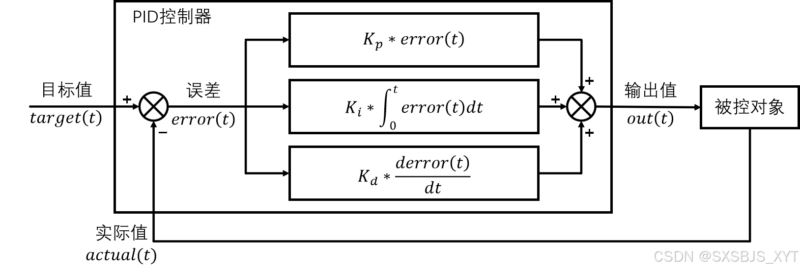 float output = pid->Kp * error + pid->Ki * pid->sumError + pid->Kd * dError;