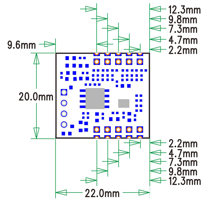 模块采用插针和半孔焊盘同时兼顾的两种方式。在已成型的产品中,可以通过插针连接方式迅速接入;而在新产品设计时,则可以按模块尺寸图,直接做焊盘形式焊接在系统板上,方便各类产品的设计生产使用。客户可根据实际使用方式而选择。