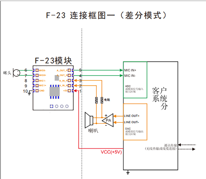 F-23模块内置美国富迪专业声学处理DSP芯片,配合针对性的算法参数,可为通讯产品提供高品质的语音传输解决方案。