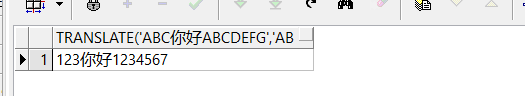 1 SELECT TRANSLATE('abc你好abcdefg','abcdefg','1234567') from dual