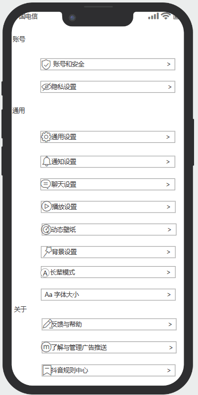 账号功能选项,通用功能选项,关于功能选项