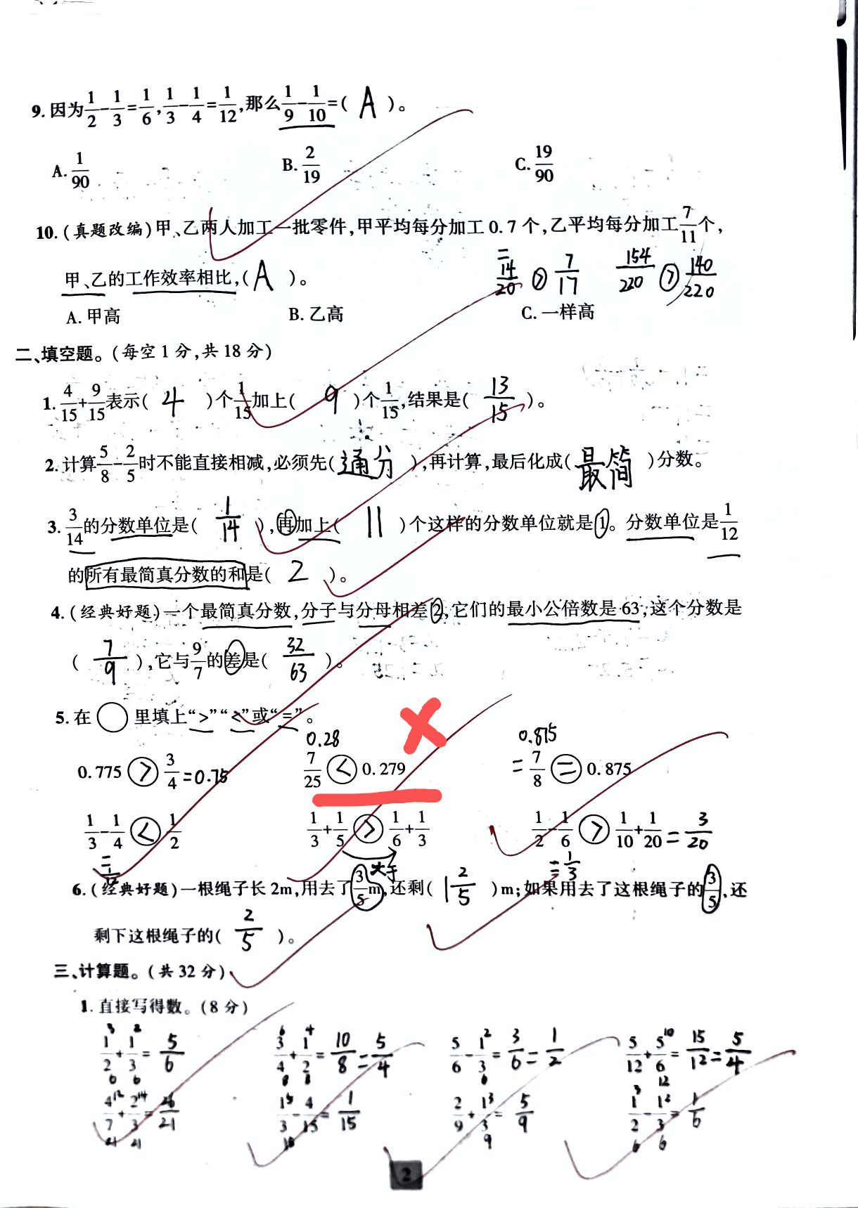 2.计算下面各题,能简算的要简算。 都3小题 第6小题 对于去掉括号的题目,学生乱变号。