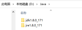 - 第一次安装jdk,安装路径D:\Java\jdk1.8.0_171。第二次安装jre,安装路径D:\Java\jre1.8.0_171