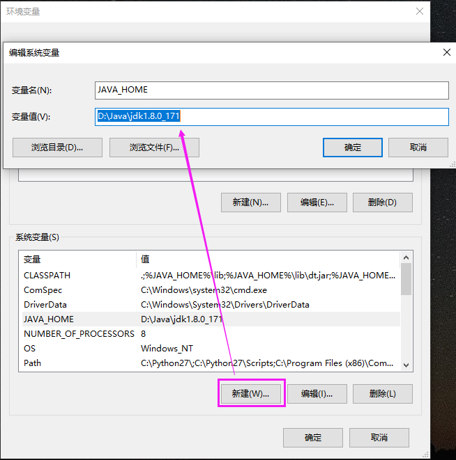 变量值:D:\Java\jdk1.8.0_171
