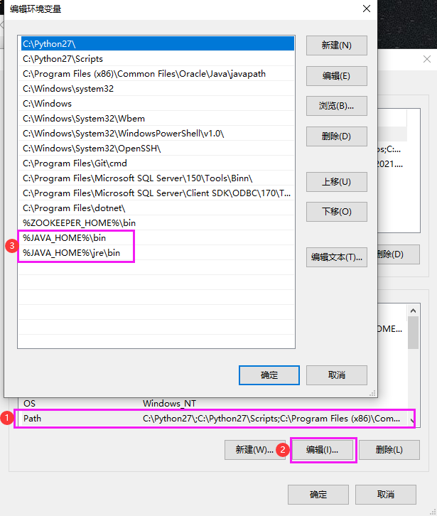 - 更改Path变量:点击“编辑”,在弹出的新建对话框中点击“新建”,添加