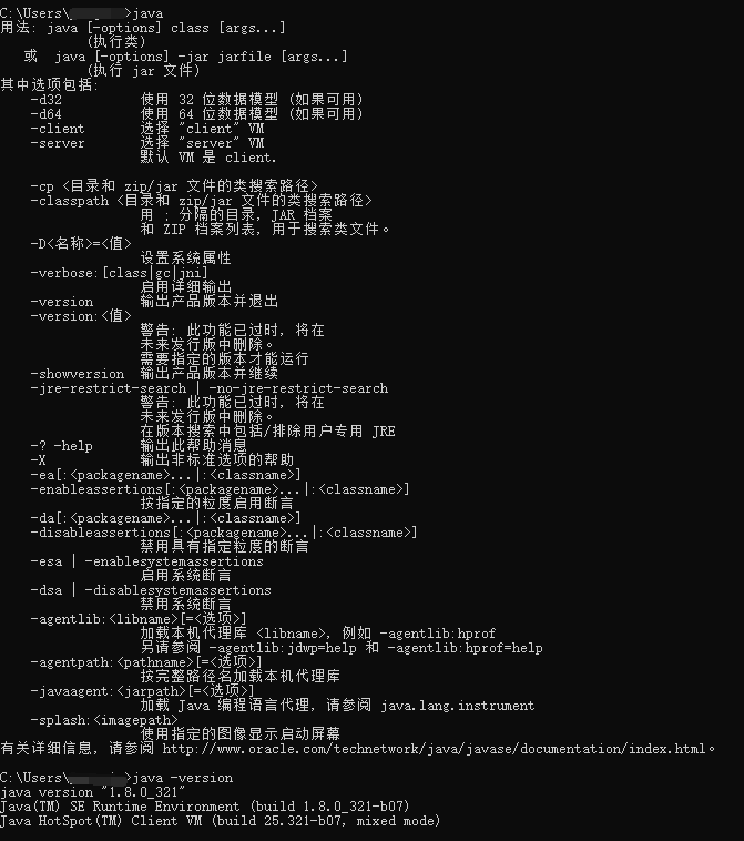 - 打开cmd,输入java,显示以下内容,说明配置完成。