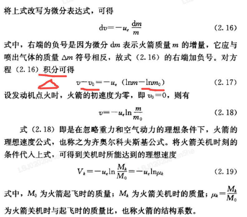 M0是起飞时火箭质量,Mk是关机时火箭质量,ue是燃料燃烧时喷气相对于火箭的速度。