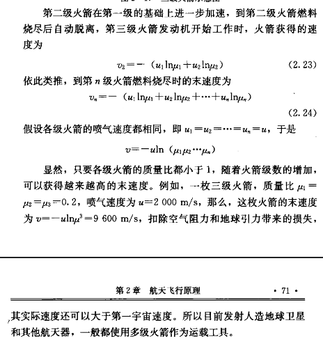 提高火箭末速度的两个方法:提高发动机喷气速度,减轻箭体质量
