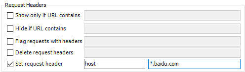set request header,文本框分别输入”Host”和”要过滤的域名”