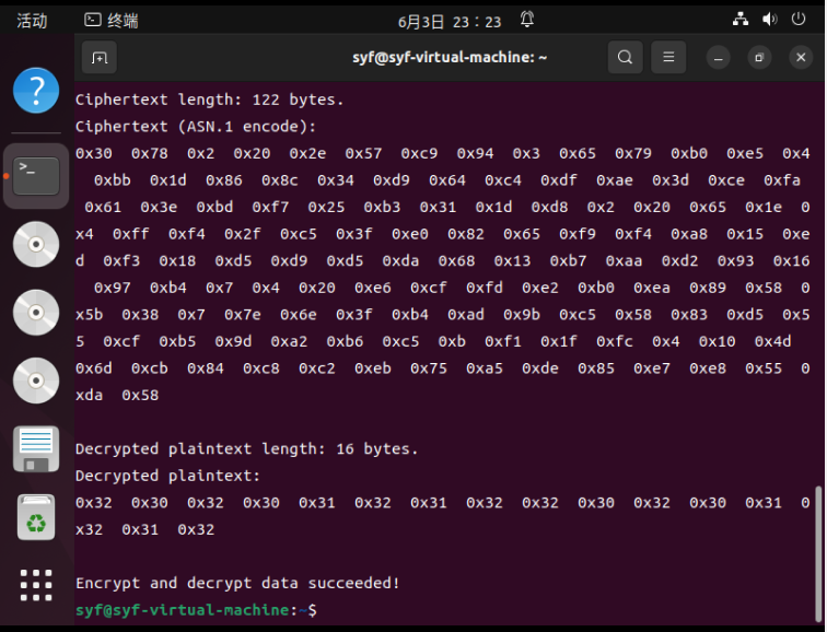 - 用OpenSSL EVP函数完成上述签名验签和加密解密两个功能,提交代码和运行结果截图。(15‘)