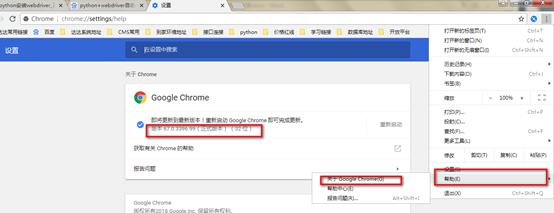 浏览器驱动,必须与浏览器版本相符,首先需要检查浏览器的版本号