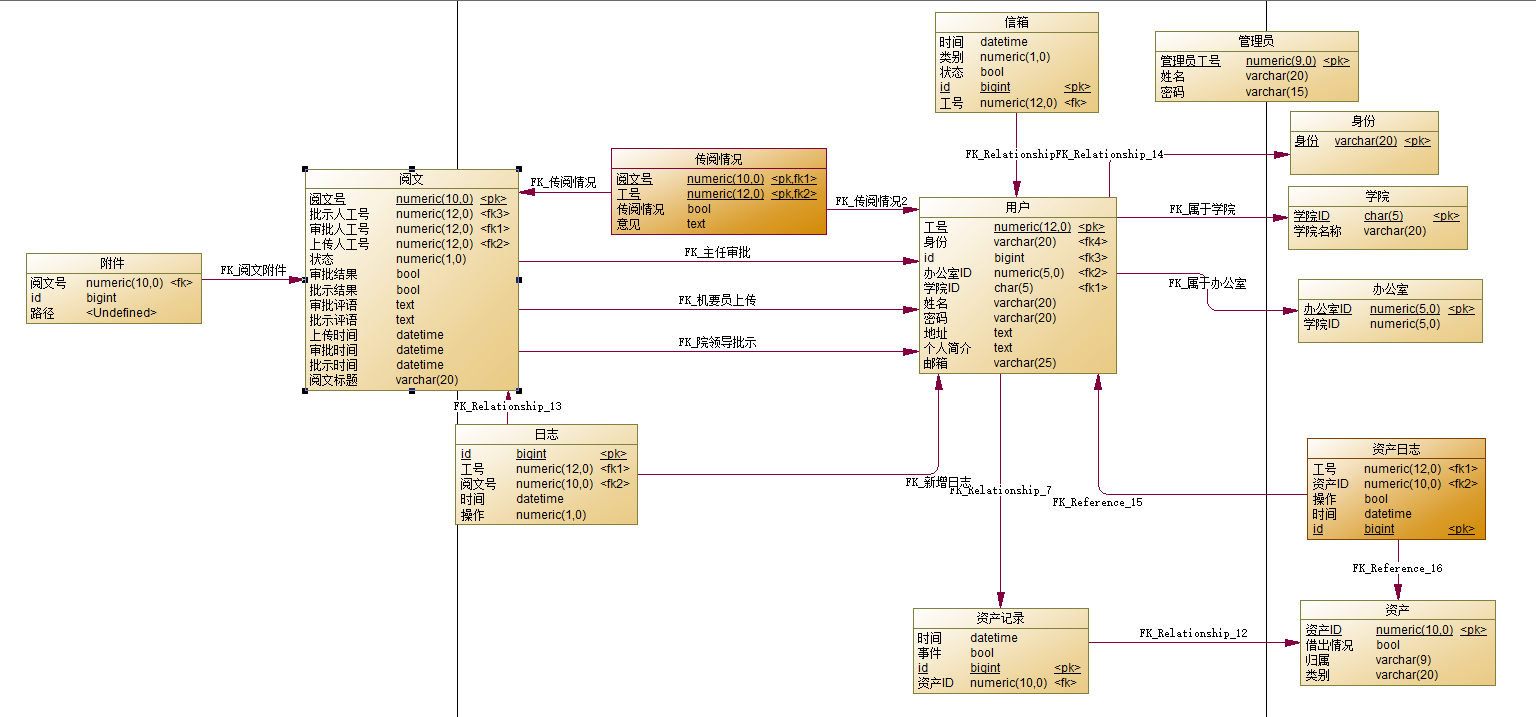 设计了传阅关系表,可以对传阅进行评论。设计了资产实体和资产借还记录表,对固有资产进行管理和借还记录进行保存。