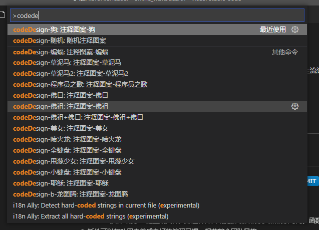 图案注释:Ctrl+Shift+p ,输入codeDesign
