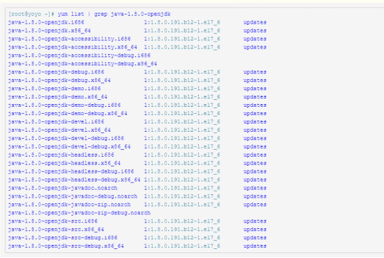 如果没有java环境的话,接着就去查找java-1.8.0的可以使用的安装包:yum list | grep java-1.8.0-openjdk