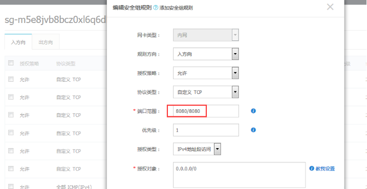 安装完之后,8080端口还是无法访问,需要登录阿里云 ECS后台管理,打开云服务器ECS-安全组-配置规则