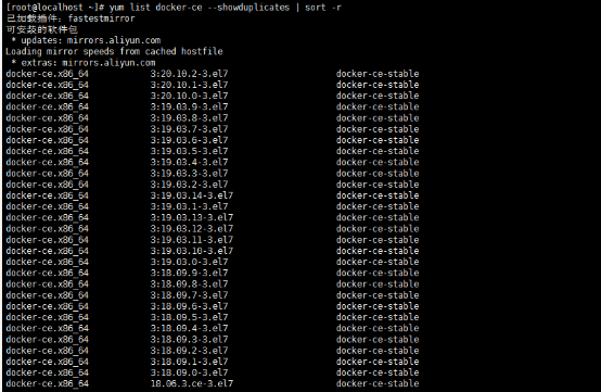 yum list docker-ce --showduplicates | sort -r