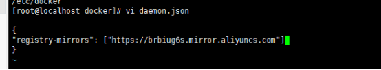 { "registry-mirrors": ["https://brbiug6s.mirror.aliyuncs.com"] }