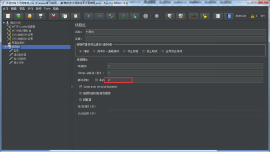 线程组中设置循环两次,运行,会分别读取出txt文件中的账号密码。