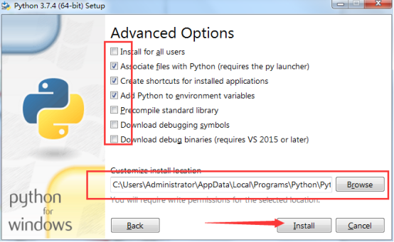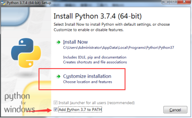 1、下载好安装包python-3.7.4-amd64