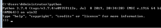 检查python是否安装好,cmd中输入python,出现以下信息即可。