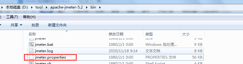 进入JMeter安装目录的bin目录下,找到jmeter.properties文件
