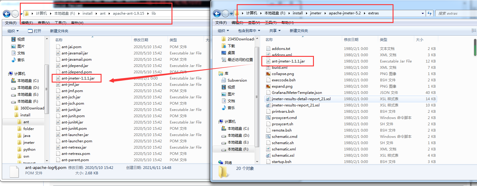 将JMeter所在目录下extras子目录里的ant-JMeter-1.1.1.jar复制到Ant所在目录lib子目录之下。(这一步很重要)