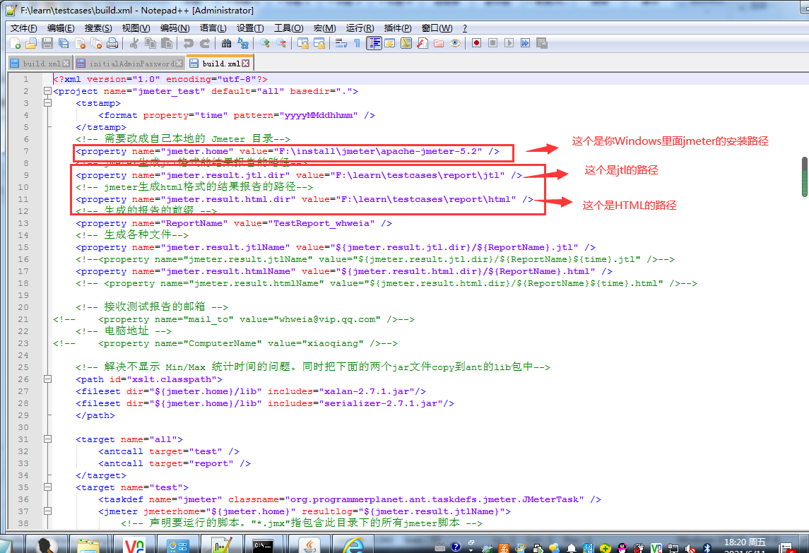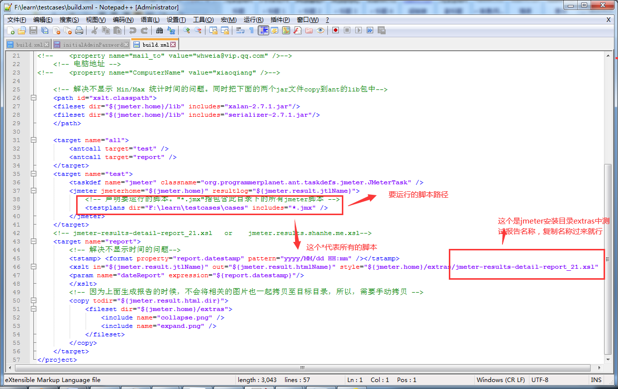 打开build.xml文件,主要看里面每一行的标注,特别需要主要标红色的地方。