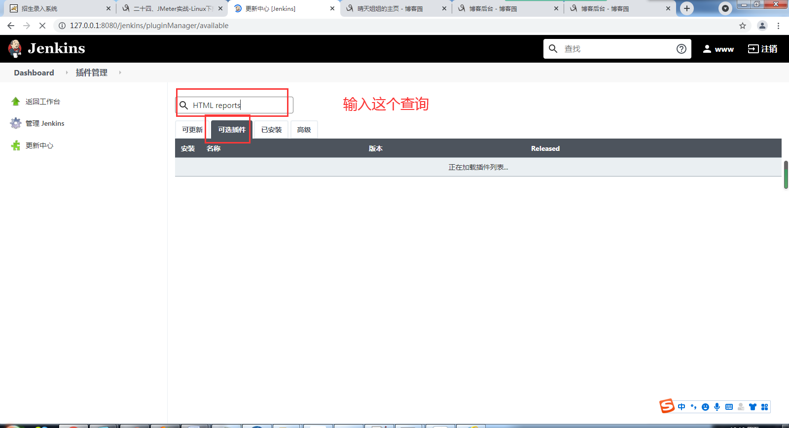 系统管理----》管理插件----》可选插件 输入 进行查询并进行安装