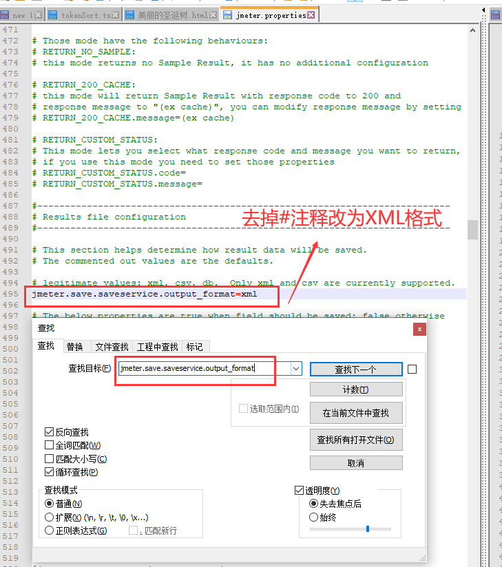 jmeter.save.saveservice.output_format,去掉注释并设置为xml。