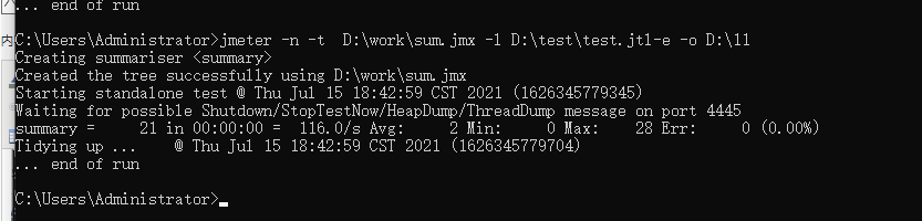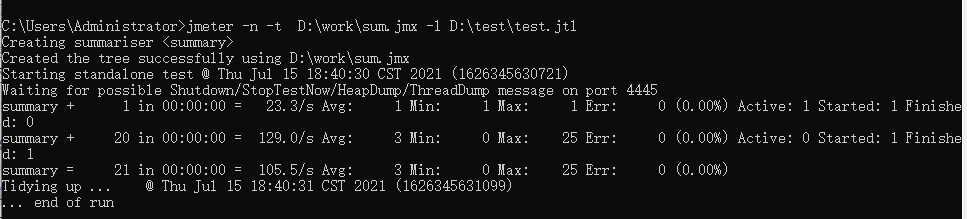 如:(jmeter -n -t F:\压测脚本\脚本文件.jmx -l F:\test\test.jtl)