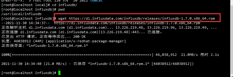 首先第一步在 usr/local 目录先新建一个influxdb文件夹
