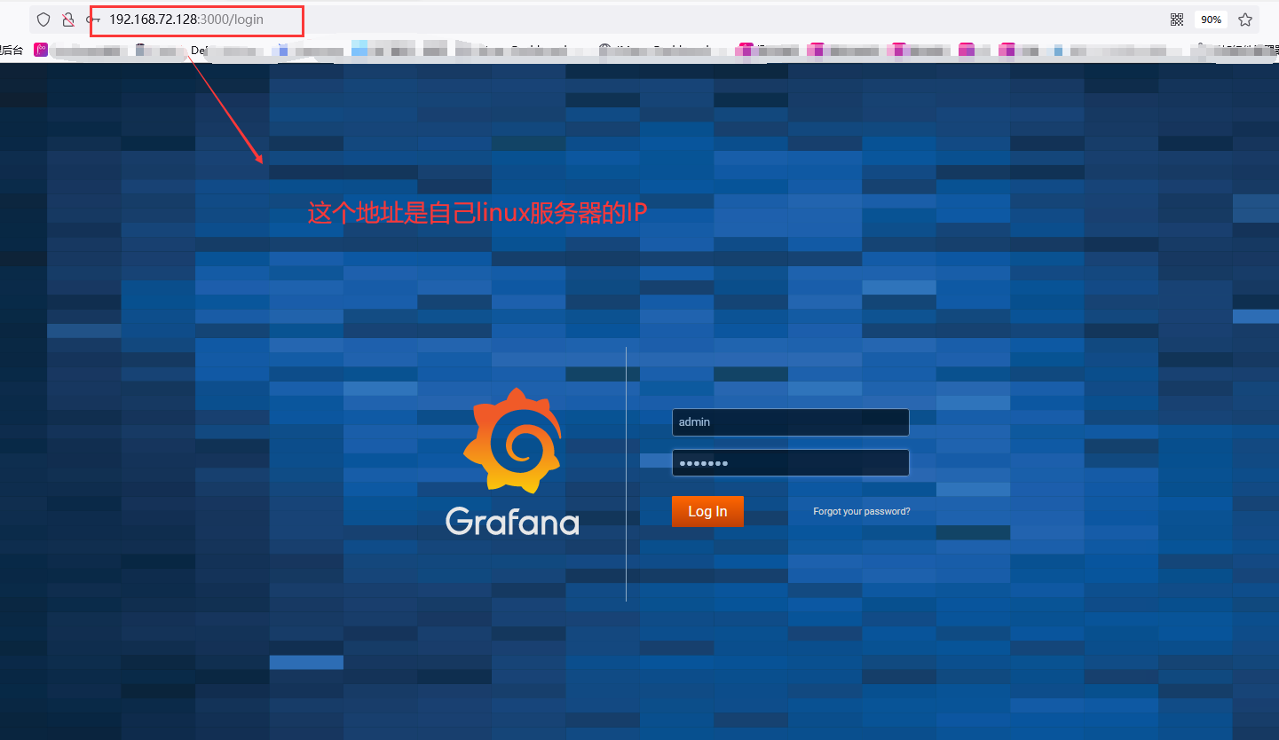 启动服务,打开浏览器,输入IP+端口,3000为 Grafana 的默认侦听端口。