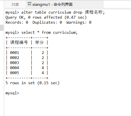 1,使用SQL语句ALTER TABLE修改curriculum表的“课程名称”列,使之为空。