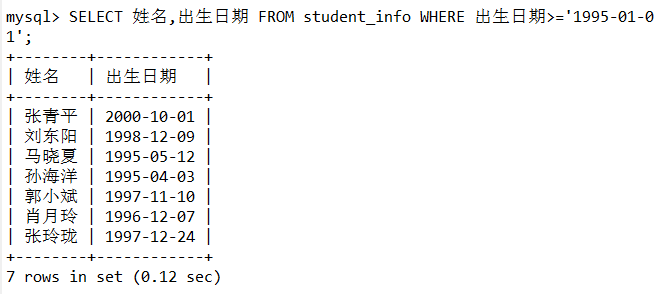 (3)查询student_info表所有出生日期在95年以后的女同学的姓名和出生日期。
