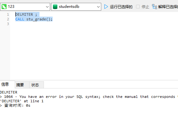 ¥(2)调用存储过程stu_grade。