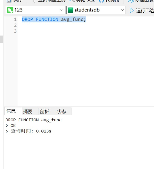 ¥(3)删除存储函数avg_func。